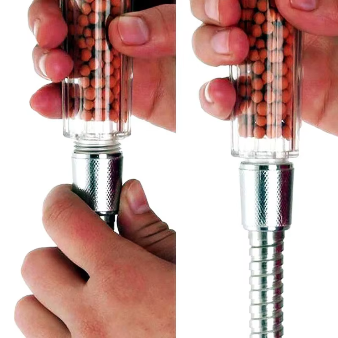 Su estructura desmontable permite lavar el filtro interno en segundos, manteniendo el flujo de agua constante y prolongando la vida útil del cabezal.