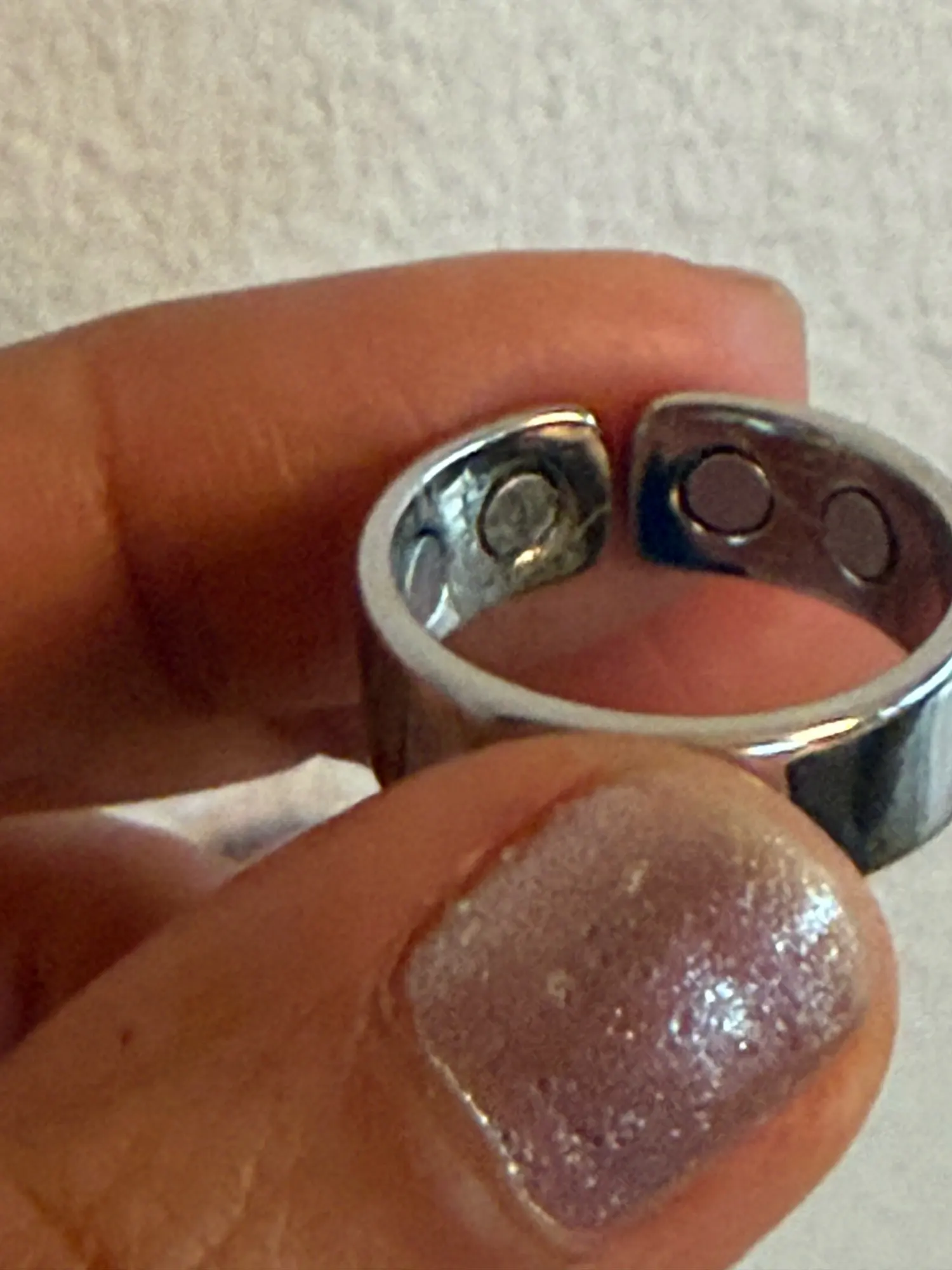 - Magnetismo: el anillo integra 4 imanes ubicados en el interior, diseñados para estar en contacto directo con la piel.